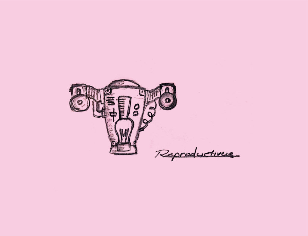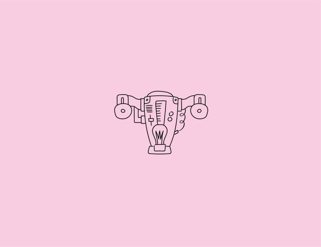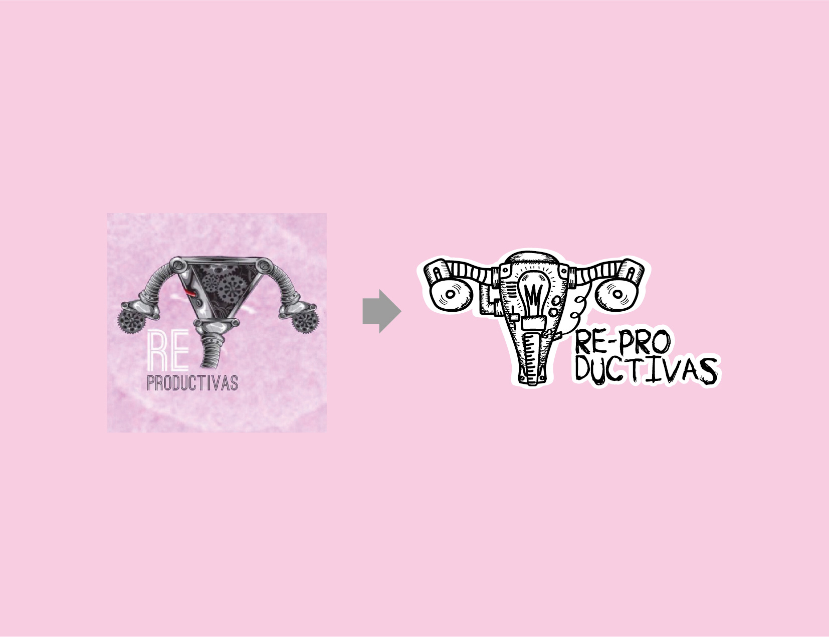 Idea: Tomando como base su imagen de marca anterior donde se utilizaba el útero en forma de máquina, esto como símbolo de productividad, realizamos un proyecto de costo muy bajo donde usando un estilo de ilustración de libros antiguos de dibujo técnico donde las máquinas se dibujan a lápiz, recreamos el útero tratando de asemejar las funciones biológicas de este pero proyectándolas de modo mecánico, como por ejemplo, el bombillo central como símbolo de creación de vida.