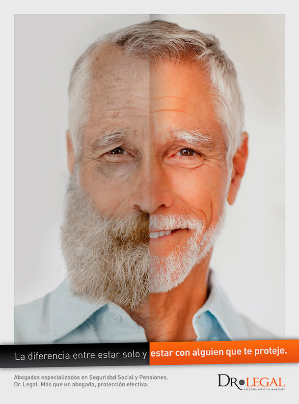 Idea: Hicimos una campaña con fotografía de retrato para generar una identificación con la posible situación que estaba viviendo en torno a las tres tipos de demandas, situaciones negativas, y generamos la solución que podría tener contar con Dr. Legal, una situación positiva.