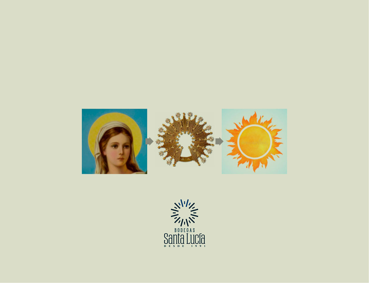Como recurso gráfico principal se uso la aureola sobre la Virgen, ya que al tipo de licores que produce la marca se les llama también “bebidas espirituosas”. Luego se creo un eslogan que hablara de lo que hace la empresa en razón al modo emocional en que trabajan: fabricar bebidas espirituosas + le ponemos el espíritu a la fabricación.