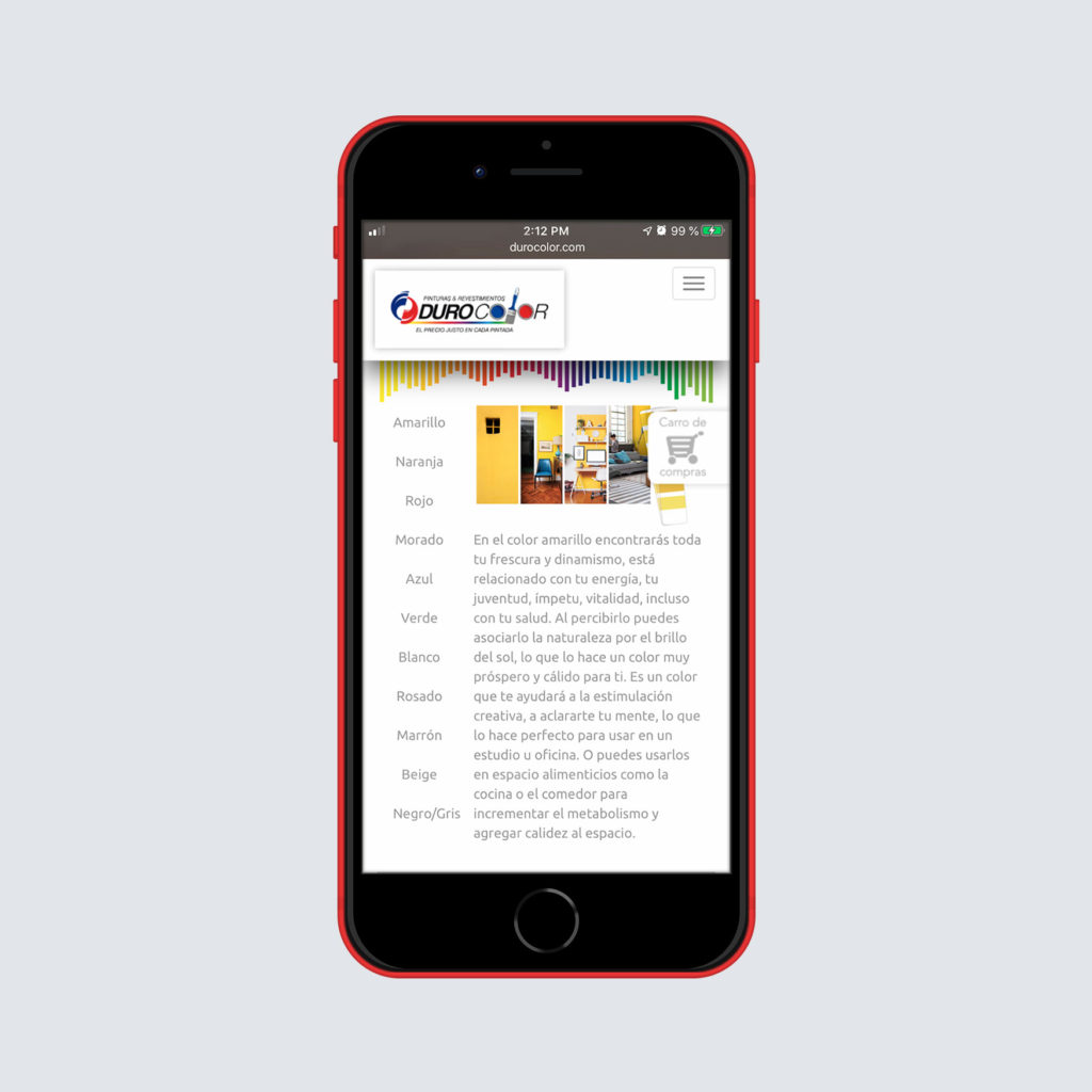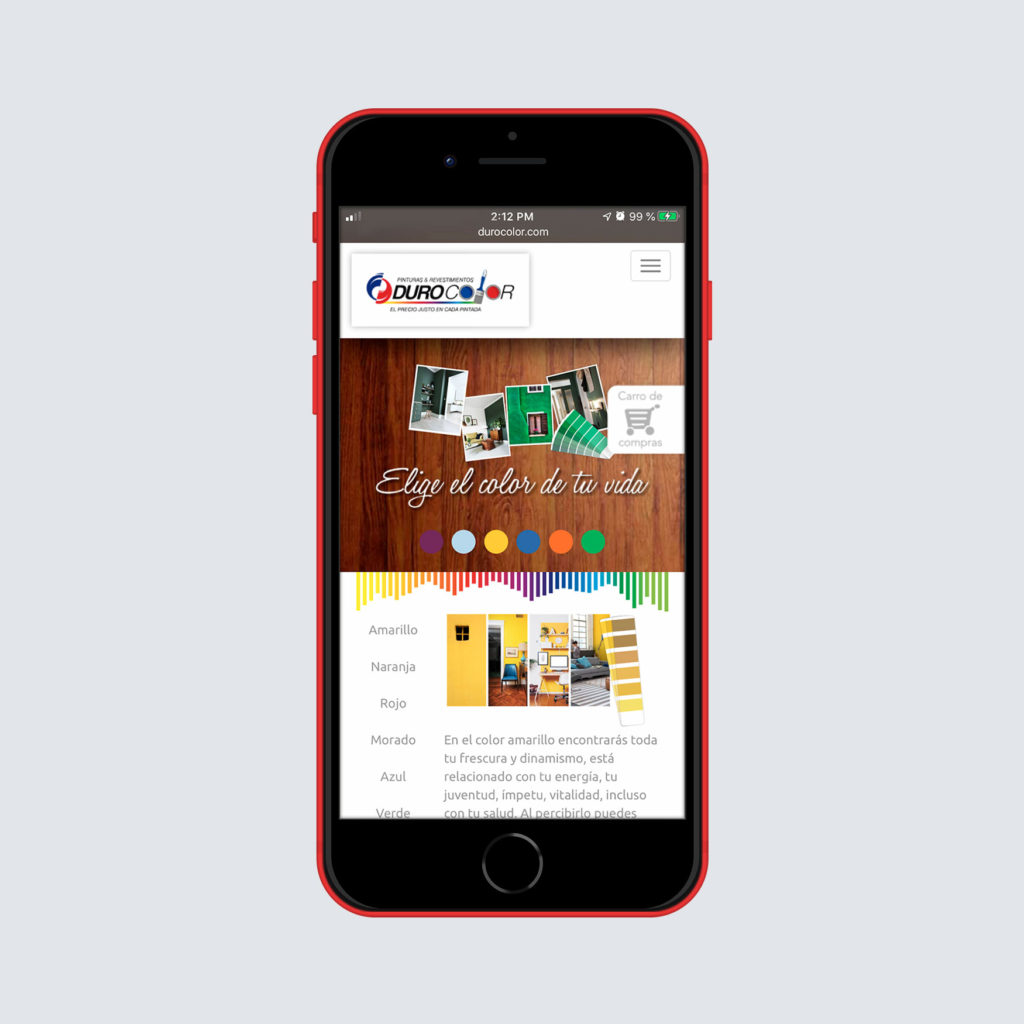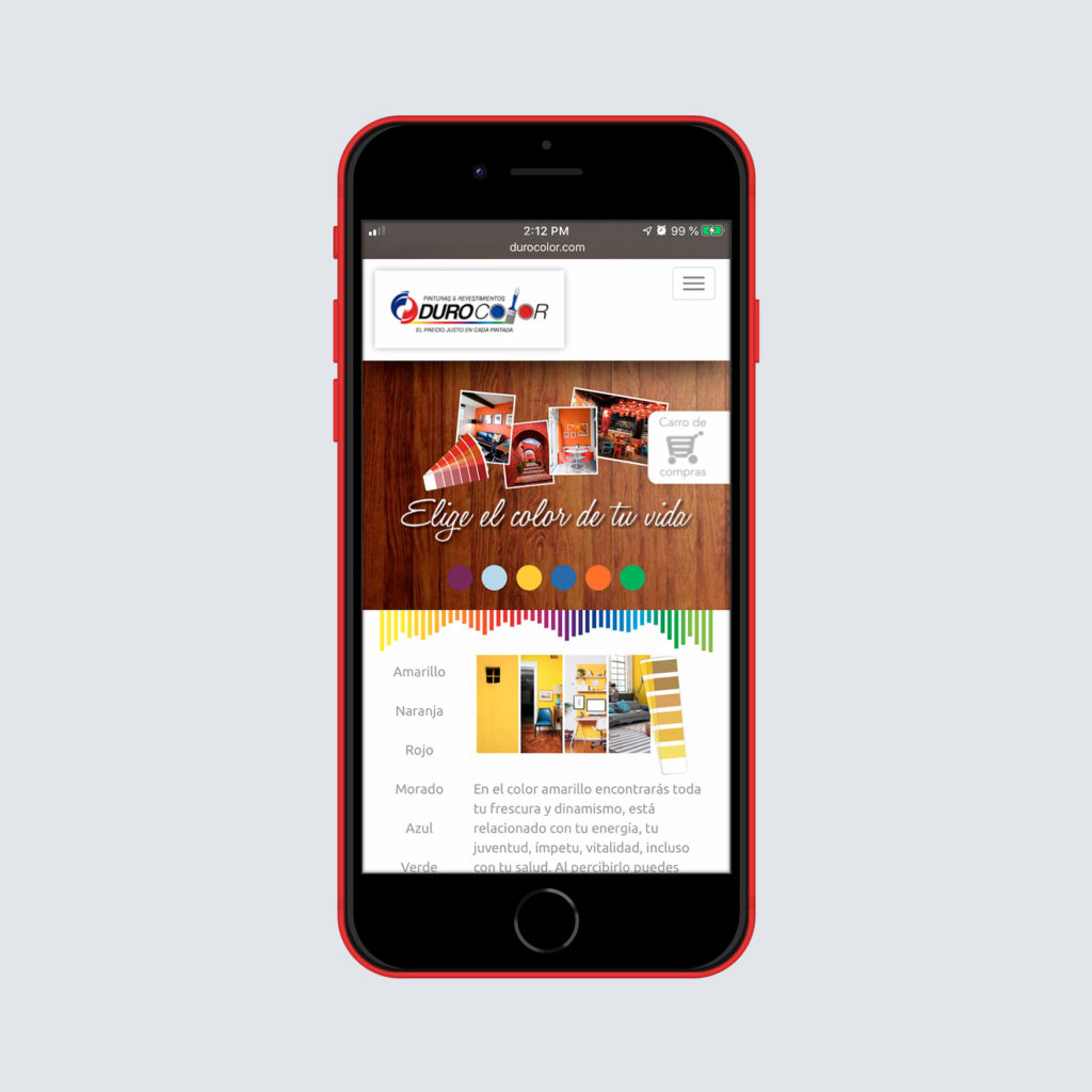 Objetivo: Pinturas Durocolor requería de una página web que impulsara la compra en línea de sus productos en amas de casa. Como objetivo secundario, debía ser útil también al ingeniero o maestro de obras.